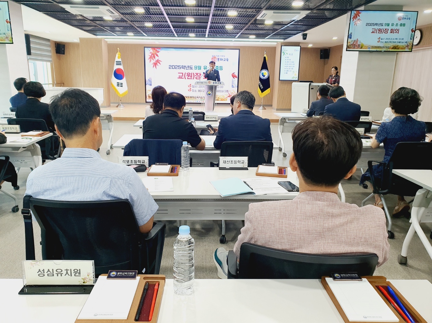 □ 봉화교육지원청(교육장 이영록)은 9월 4일(목) 봉화교육지원청 3층 어울림실에서 관내 유·초·중·고등학교 교(원)장, 교(원)감, 부장교사 37명을 대상으로 ‘2025학년도 하반기 관리자 회의’를 개최했다.