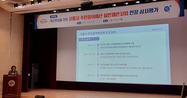 [금요저널] 시흥시는 지난 9월 8일 시흥시청 늠내홀에서 주민참여예산위원과 동별 주민평가단 등 주민 100여명이 참석한 가운데 ‘2026년 예산편성을 위한 주민참여예산 일반제안사업 현장심사 평가’를 개최했다.