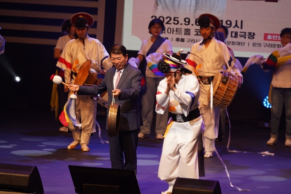 이날 공연은 구리문화재단의 상주예술단체 유희컴퍼니와 시민길놀이단의 오프닝 무대로 화려하게 시작됐으며 백경현 구리시장이 힘찬 타징 퍼포먼스로 개막을 알렸다.