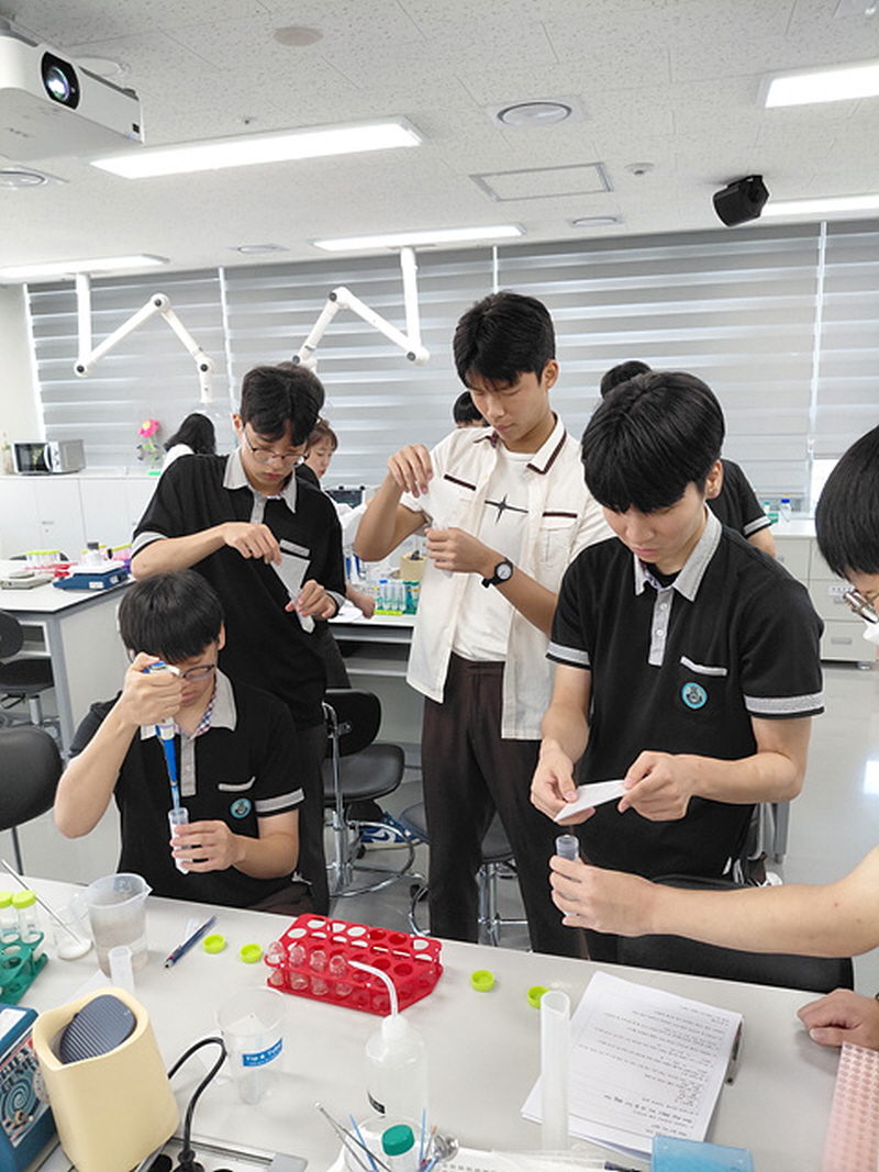 1학년 학생들은 동·식물에서 DNA를 추출하고, 그 원리와 과정을 실험을 통해 체험하며 생명과학에 대한 탐구심을 키우는 계기를 마련했다. 2학년 학생들은 기질과 효소의 반응을 설계하고 수행하며 과학적 사고력과 문제 해결 능력을 높일 수 있는 소중한 경험을 했다.