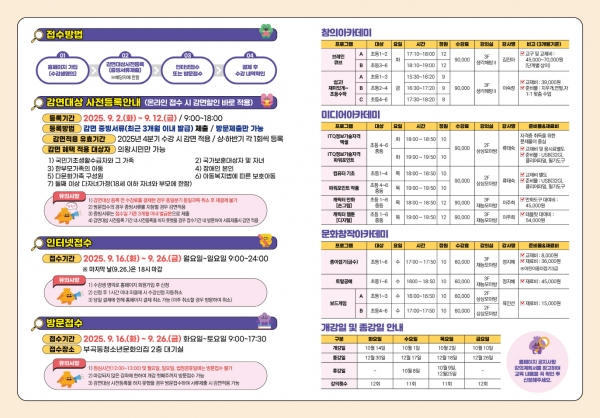 수강료 감면 혜택을 원하는 청소년은 사전등록 절차를 거쳐야 하며 하반기 감면사전등록 기간은 9월 12일까지이다.