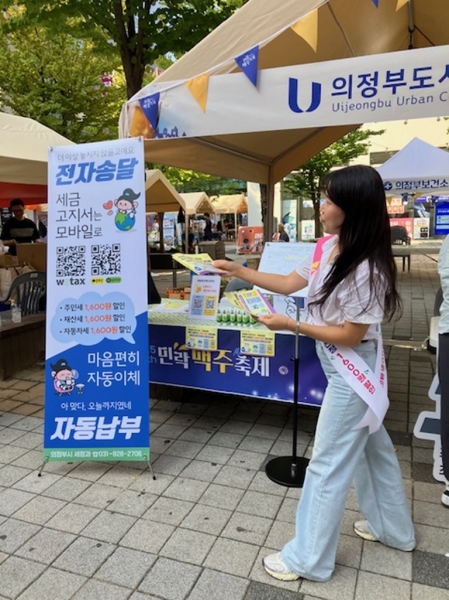 [금요저널] 의정부시는 9월 5일과 6일 민락2지구 로데오광장 일원에서 열린 ‘민락맥주축제’ 현장에서 지방세 전자송달 및 자동납부 제도 홍보 부스를 운영했다.