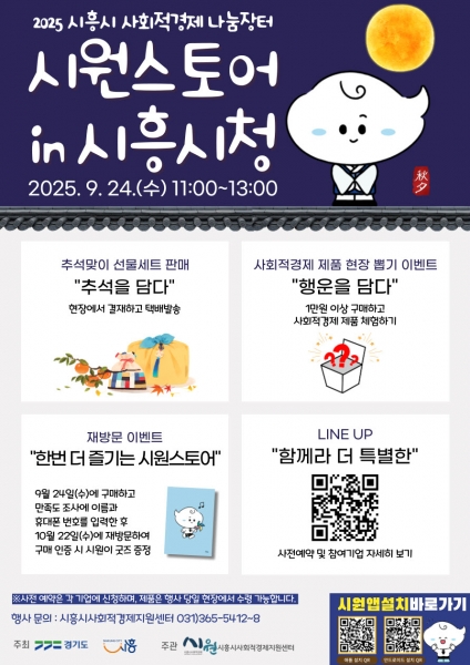 시흥시 사회적경제 나눔장터 ‘시원스토어 in 시흥시청’에서 판매하는 추석맞이 선물세트는 현장 구매뿐만 아니라 시흥시 사회적경제 전용 모바일 앱인 ‘시원’앱에서도 구매할 수 있다.