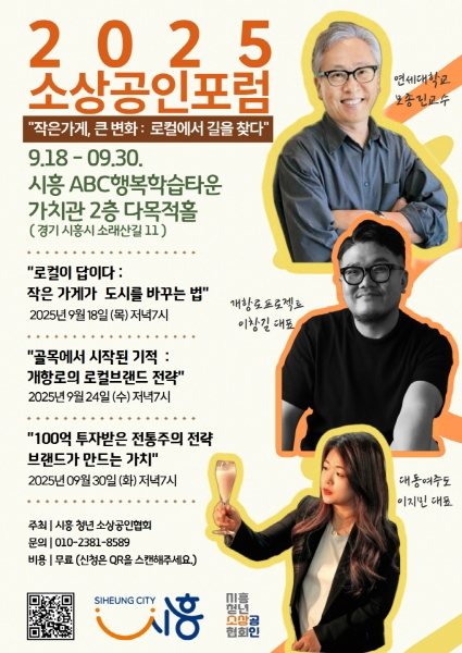 [금요저널] ‘시흥청년소상공인협회’ 가 주최하는 ‘2025 소상공인포럼’ 이 오는 9월 18일부터 9월 30일까지 시흥ABC행복학습타운 가치관 2층 다목적홀에서 개최된다.
