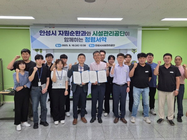 송석근 자원순환과장은 “안성시의 공기업체와 함께 청렴 실천 의지를 다질 수 있는 뜻깊은 자리를 갖게 되어 기쁘며 앞으로도 공기업체뿐만 아니라 각계각층의 시민들과 함께 청렴을 연계한 행사를 추진해 일상생활 속에서 청렴을 생활화 하겠다”고 전했다.