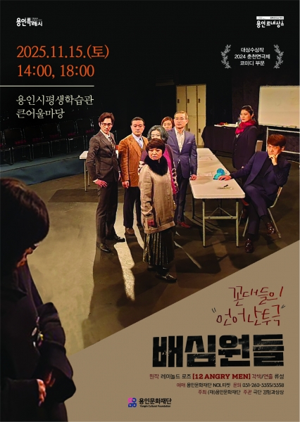 [금요저널] 용인문화재단은 오는 11월 15일 용인시평생학습관 큰어울마당에서 블랙코미디 연극 ‘배심원들’을 선보인다.