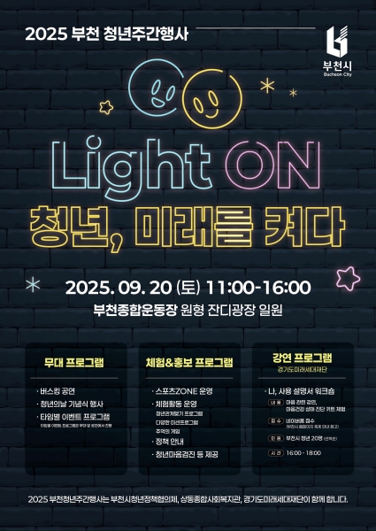 [금요저널] 부천시는 청년의 날을 기념해 9월 20일 부천종합운동장 원형 잔디광장에서 ‘2025 부천 청년주간행사’를 연다.