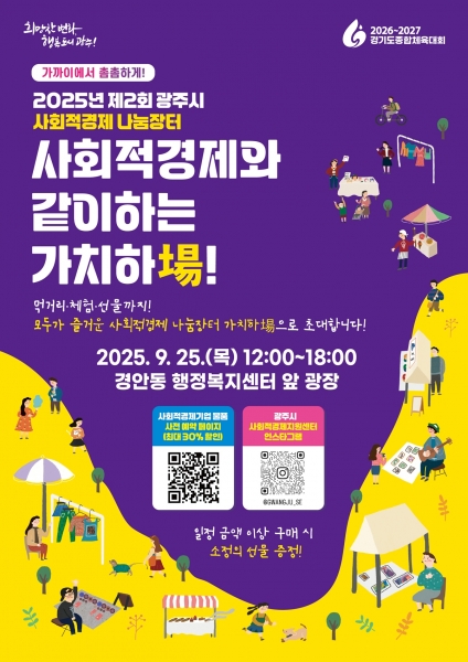 [금요저널] 광주시는 오는 25일 낮 12시부터 오후 6시까지 경안동 행정복지센터 앞 광장에서 ‘2025년 제2회 광주시 사회적경제 나눔장터’를 개최한다고 15일 밝혔다.