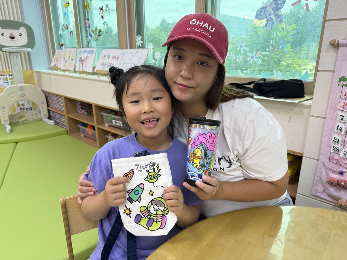 □ 아이들은 전용 도안에 그림을 그리고 색을 칠하며 세상에 하나뿐인 ‘우리 가족 텀블러’를 만들어보았다. 이어서 텀블러를 담을 수 있는 ‘에코백 꾸미기’ 활동을 통해 작품을 더욱 특별하게 완성하였다. 이 과정에서 아이들은 창의력과 표현력을 발휘하였으며, 학부모들은 자녀의 성장을 가까이에서 지켜보며 함께하는 기쁨을 나눌 수 있었다.