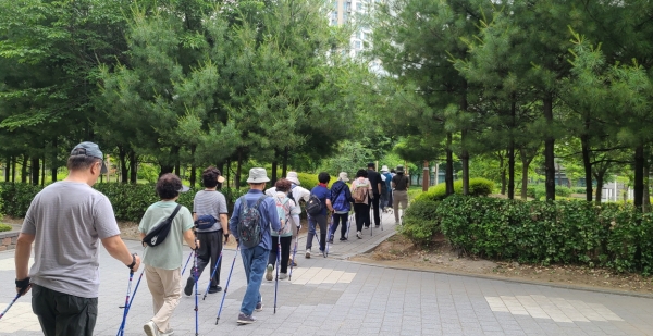 특히 전용 스틱을 활용해 상·하체 근육을 균형 있게 단련하는 전신 운동인 노르딕워킹을 체계적으로 배우며 바른 보행법과 관절 건강 관리, 근력 강화 운동 등 다양한 맞춤형 프로그램도 함께 진행해 참가자들은 올바른 걷기 방법을 익히는 것은 물론 신체 균형과 체력 향상, 스트레스 해소에도 도움을 받을 수 있다.