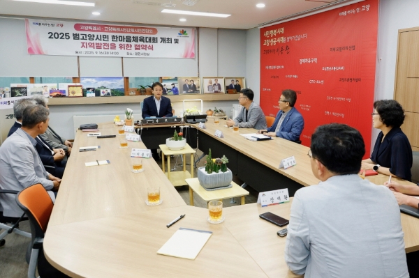 [금요저널] 고양특례시는 지난 16일 고양시청 열린시장실에서 고양특례시5단체시민연합회와 ‘범고양시민 한마음 체육대회’의 성공적인 개최를 위한 간담회를 진행했다고 밝혔다.