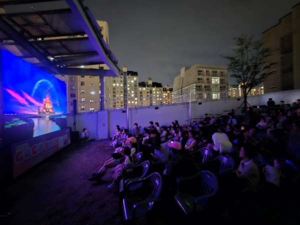 120석 규모로 꾸며진 야외 영화 상영장을 가득 메운 가족 단위 관람객들은 구에서 준비한 팝콘 등 간식과 함께 남녀노소 누구나 즐길 수 있는 가족 영화 ‘인사이드 아웃 1’을 관람했다.