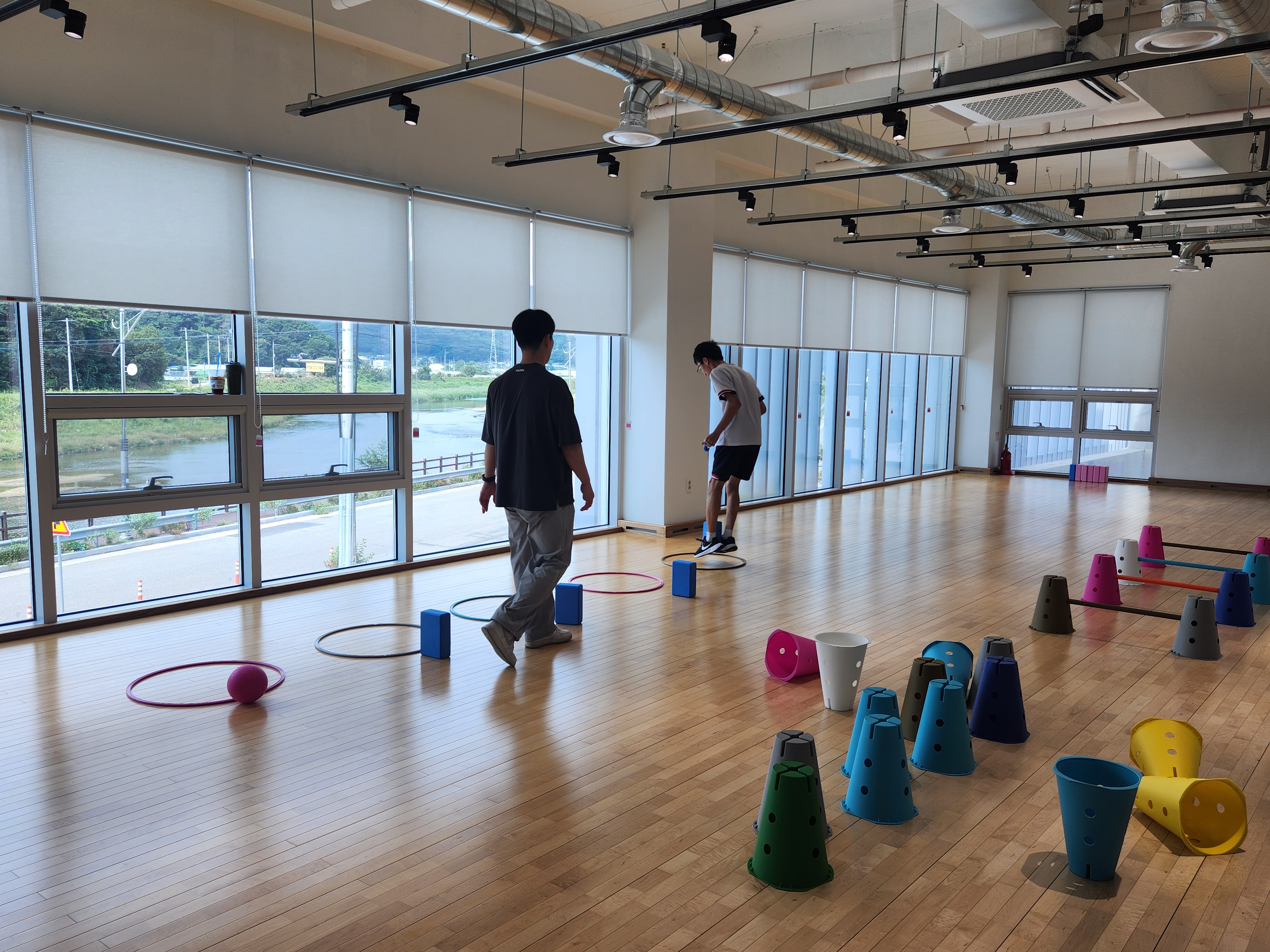 □ 특수체육발달센터 전문강사가 참여하여 체력검사, 균형 및 코어 강화, 협동미션 게임, 축구, 농구 등 다양한 프로그램을 운영하며 매주 수요일 성주반다비체육센터 소체육관에서 진행된다.