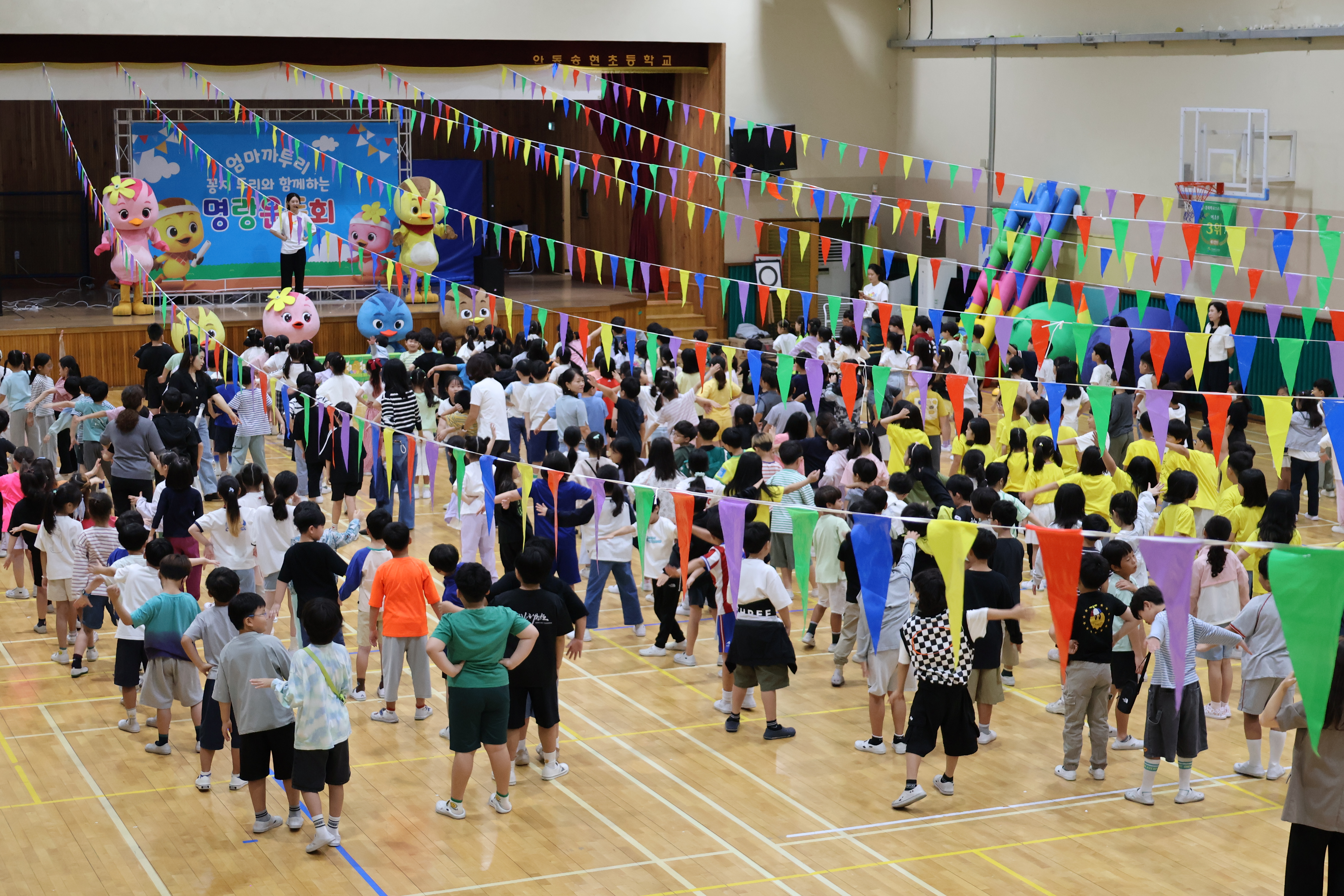 - 이번 명랑운동회는 엄마 까투리 율동 체조, OX 퀴즈, 공 굴리기, 색판 뒤집기, 기념 촬영 등 다채로운 프로그램으로 운영되어 학생들에게 즐거운 체육 활동 경험을 제공하였다.