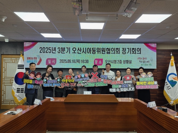[금요저널] 오산시는 지난 18일 시청에서 오산시아동위원협의회 15명의 위원들이 참석한 가운데 ‘2025년 3분기 오산시아동위원협의회 정기회의’를 개최했다고 밝혔다.