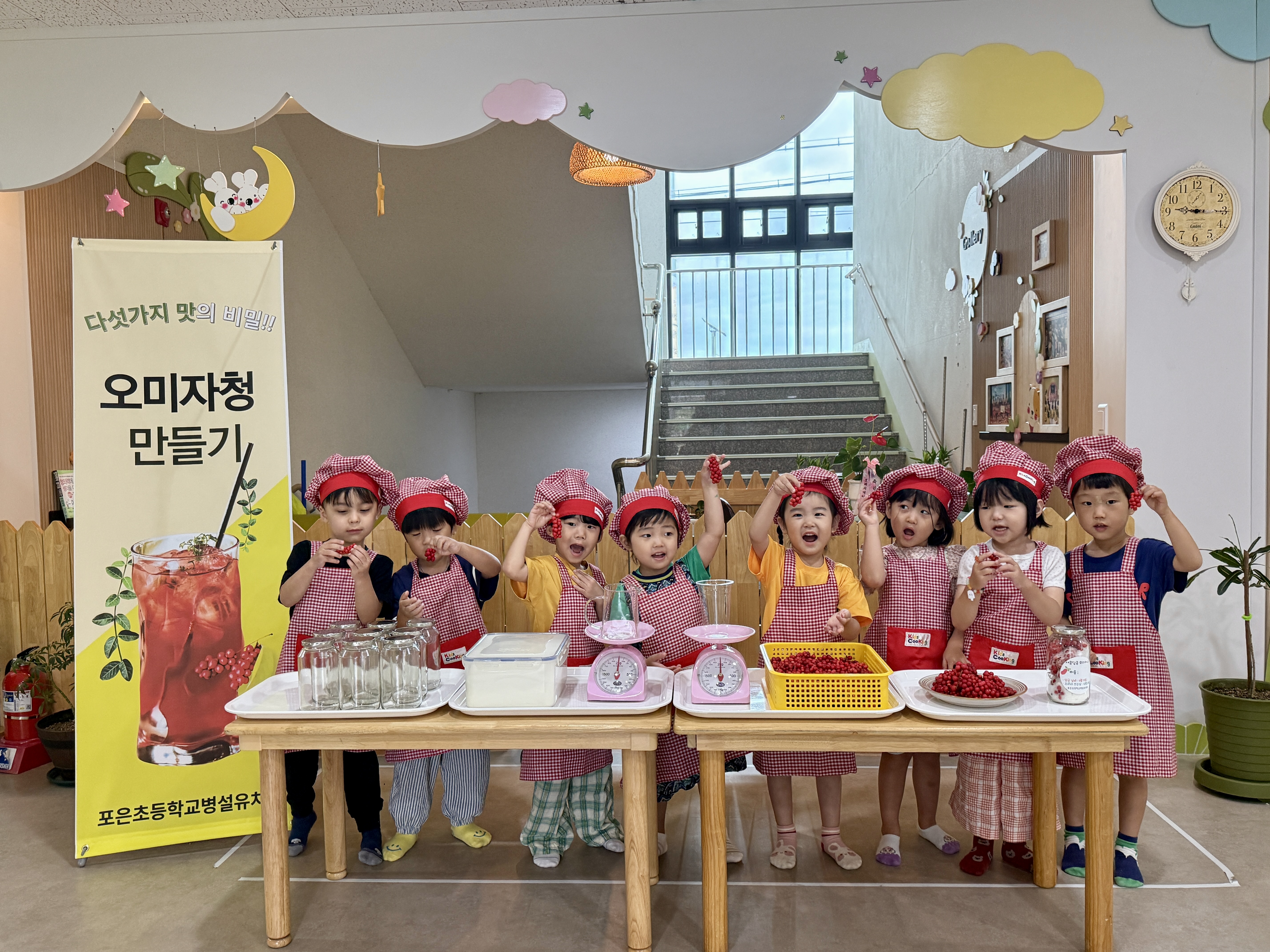 □ 포은초등학교병설유치원 원장 박우형은 "이번 오미자청 만들기 체험은 아이들이 자연과 가까워지고 직접 손으로 만지며 체험하는 감각적 경험을 통해 과학적 탐구력을 기르는 특별한 배움의 시간이었다”라고 소감을 전했다.