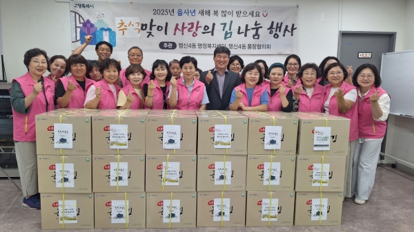 [금요저널] 고양특례시 덕양구 행신4동 통장협의회는 지난 17일 추석 명절을 맞아 관내 저소득 가구와 독거노인 등 어려운 이웃에게 사랑의 김 100박스를 전달했다.