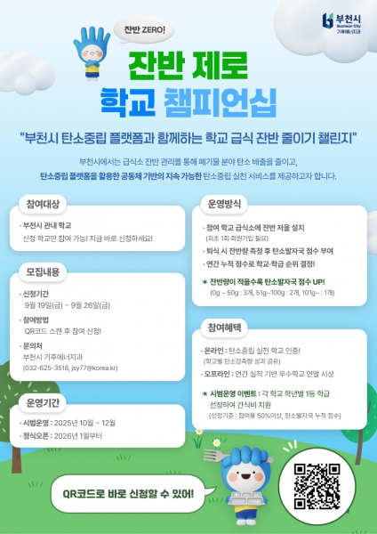 [금요저널] 부천시는 9월 19일부터 26일까지 ‘잔반제로 학교 챔피언십’ 참가학교 신청을 받는다.
