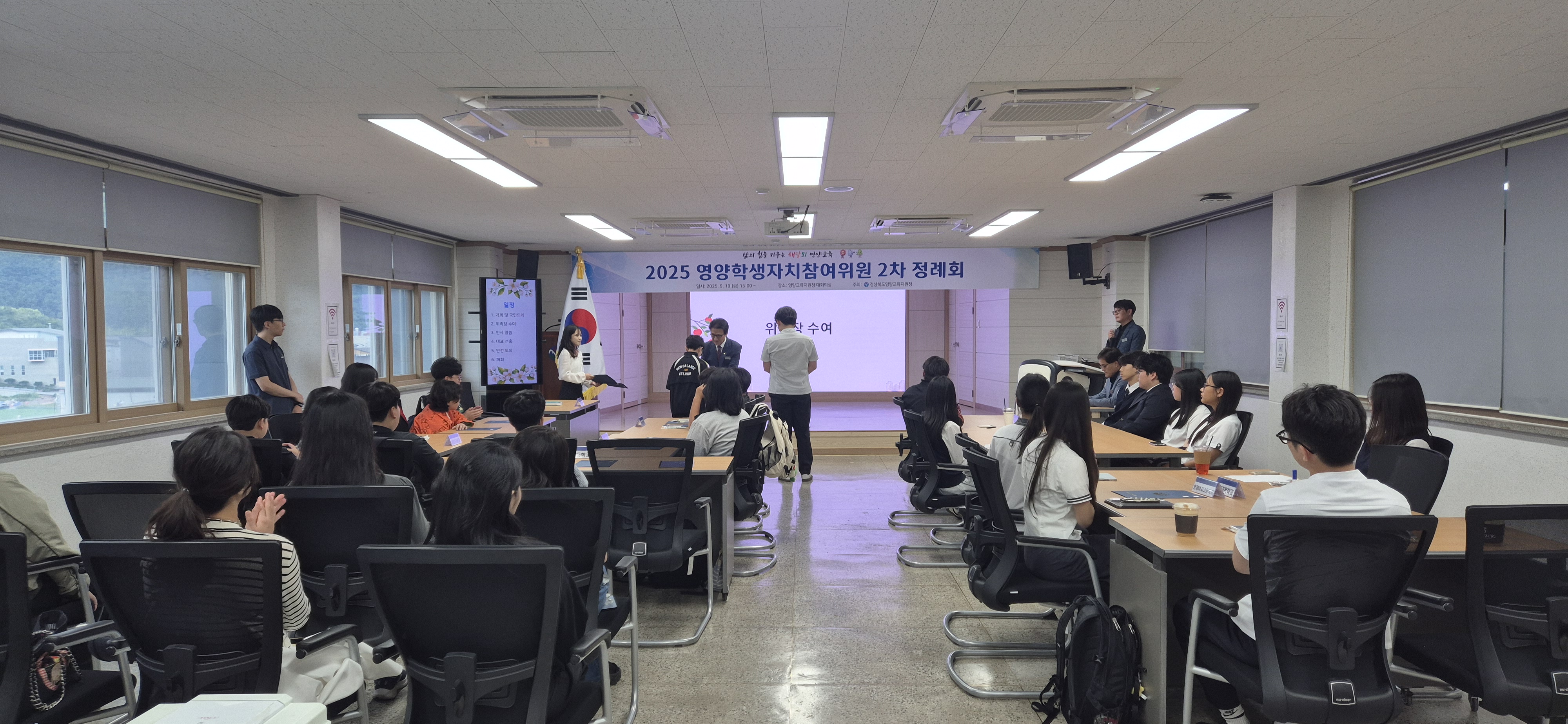 경상북도영양교육지원청(교육장 박근호)은 19일 영양교육지원청 3층 대회의실에서 관내 각 초·중·고등학교 학생회 대표 25명이 참여한 영양학생자치참여위원회 2차 정례회를 실시하였다.