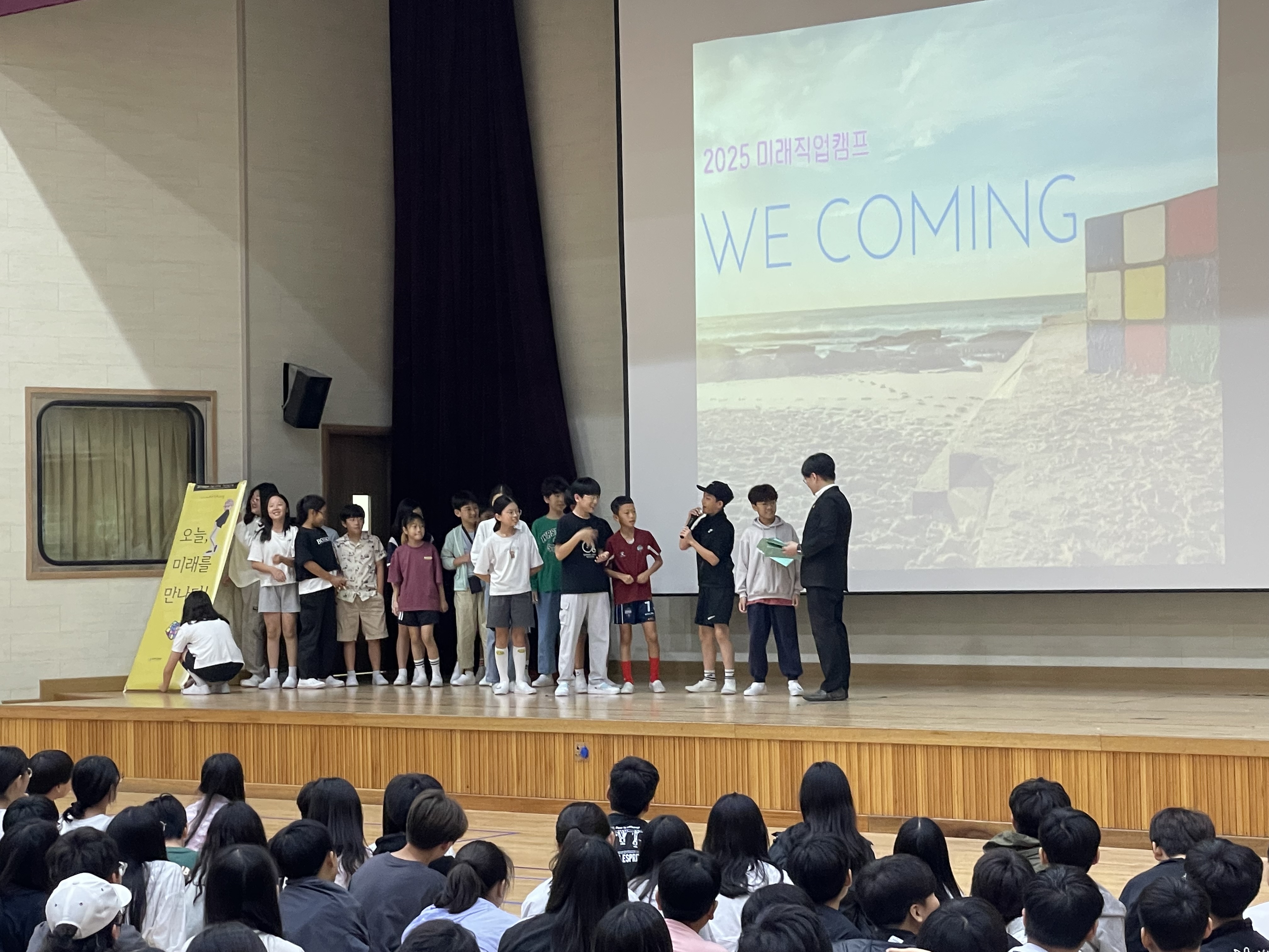 □ 이날 행사는 1교시 강당에서 진행된 생성형 AI 특강으로 시작되었다. 5~6학년 학생들을 대상으로 열린 강연에서는 최신 인공지능 기술의 동향과 활용 사례를 소개하고, 생활 속에서 AI가 어떻게 쓰이는지를 구체적으로 다루었다.