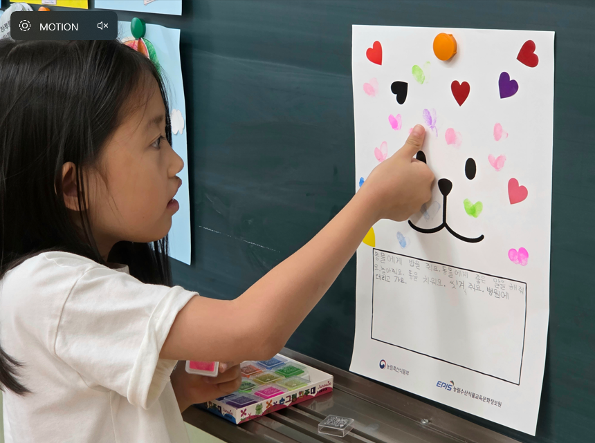 □ 1회차에서는 “동물도 행복을 원해요”라는 주제로, 동물복지와 동물보호법, 개식용 종식의 의미를 배우며 모든 생명체가 행복을 누릴 권리가 있음을 깨달았다. 2회차 “동물을 사랑해 줘요” 활동에서는 도우미견과 함께 하며 길고양이 돌봄, 유기동물 문제를 이해하고, 작은 실천이 큰 변화를 가져올 수 있음을 배웠다. 3회차 “동물과 친구가 되고 싶어요” 활동에서는 반려동물을 가족으로 맞이하는 마음가짐과 더불어 펫티켓을 배우고 실천하는 시간을 가졌다.