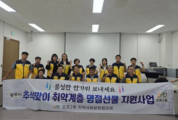 이에 대해 박종덕·이호순 오포2동 지보체 공동위원장은 “작은 정성이지만 소외되는 이웃 없이 모두가 풍성한 명절을 보내시기 바란다”며 “앞으로도 민관이 협력해 복지 사각지대 해소를 위한 나눔 활동을 꾸준히 실천하겠다”고 밝혔다.