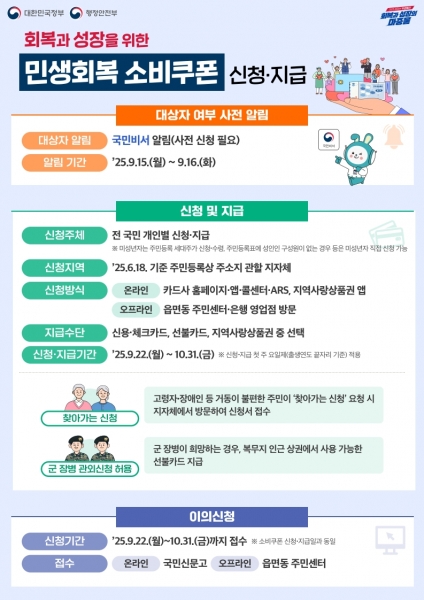 [금요저널] 양주시가 지역경제 활성화와 시민 생활 안정을 위한 2025년 2차 민생회복 소비쿠폰 신청 접수를 22일부터 시작한다.