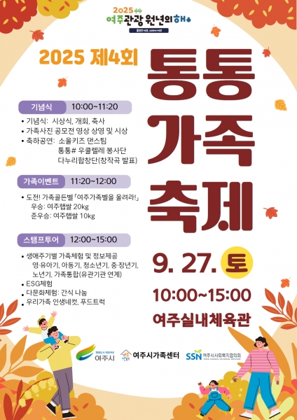 [금요저널] 여주시는 오는 9월 27일 오전 10시부터 오후 3시까지 여주실내체육관 일원에서 ‘제4회 통-통가족축제’를 개최한다고 밝혔다.
