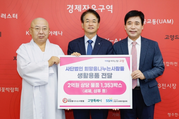 [금요저널] 고양특례시는 23일 희망을 나누는 사람들로부터 2억원 상당의 생활용품 1,353박스를 전달받았다고 밝혔다.