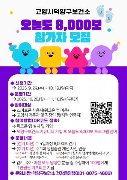 고양시 덕양구보건소, 비대면프로그램‘오늘도 8,000보’ 참여자 모집