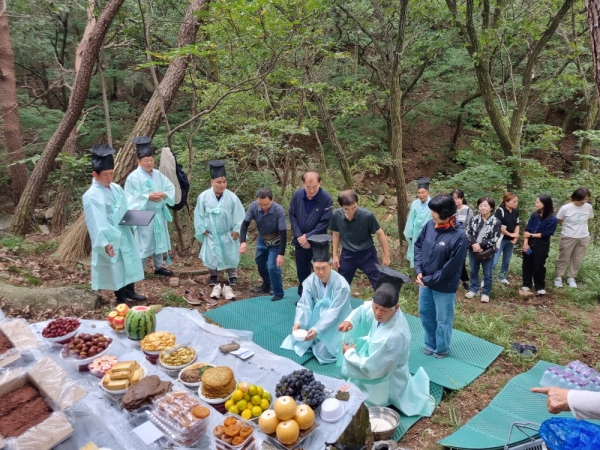 [금요저널] 고양특례시 덕양구 효자동 주민자치회는 더위가 한풀 꺾이고 선선한 바람이 스치는 지난 22일 북한산 자락에서 전통 산신제를 올리며 주민들의 무사 안녕과 풍요를 기원했다.