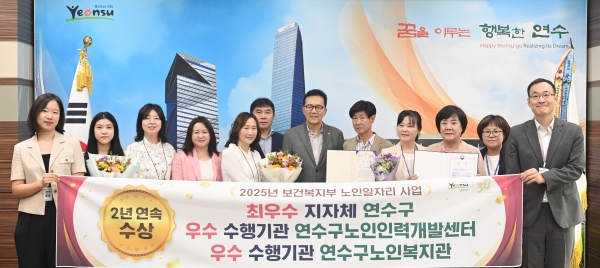 [금요저널] 연수구가 보건복지부에서 실시한 ‘2025 노인일자리 및 사회활동 지원사업 평가’에서 2년 연속 최우수 지자체상의 영예를 안았다.