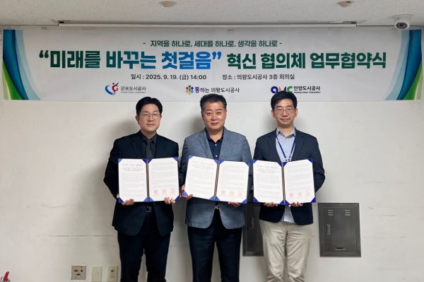 [금요저널] 의왕도시공사는 본사 회의실에서 9월 19일 군포도시공사·안양도시공사와 함께 청년직원들의 혁신적 협력과 상생을 도모하기 위한 혁신 협의체 업무협약을 체결했다고 밝혔다.