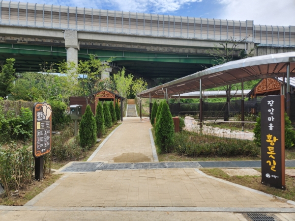 이번에 개장되는 ‘장안마을 황톳길’은 총연장 110m 순환형 산책로로 조성됐으며 폭 2.5m의 시원한 개방감을 준 것이 특징이다.