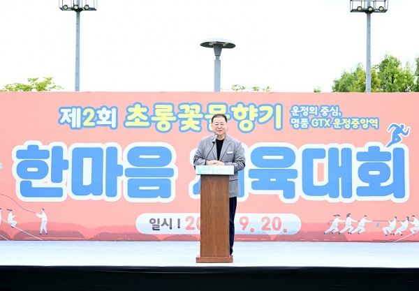 김경일 파주시장은 축사를 통해 “종목이 남녀노소 누구나 즐길 수 있는 다채롭고 색다른 프로그램이 있어서 놀랐는데, 이른 아침부터 아이들이 너무 많아서 또 한 번 놀랐다”며 “오늘 체육대회가 지역 주민들의 건강과 화합을 다지는 소중한 시간이 되기를 바라고 앞으로도 생활체육 활성화를 위해 적극 지원하겠다”고 말했다.