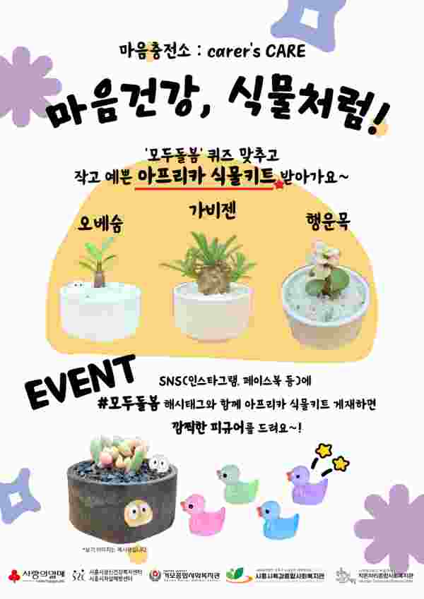 ‘마음건강, 식물처럼’ 이라는 주제는 식물이 햇빛, 물, 공기, 관심 속에서 자라듯, 우리의 마음도 적절한 돌봄과 관계 속에서 성장하고 회복된다는 메시지를 담고 있다.