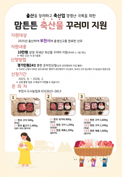 [금요저널] 부천시는 2025년 출산 산모를 대상으로 ‘맘튼튼 축산물 꾸러미’ 지원 사업을 추진한다.