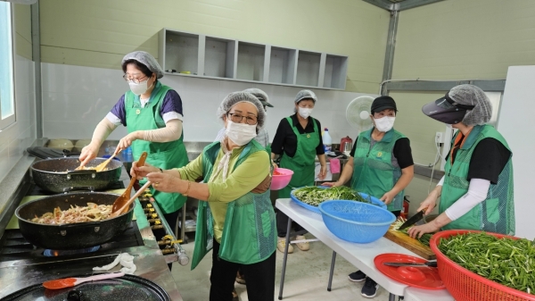 이번 행사는 명절을 홀로 보내는 어르신과 취약계층 가정에 따뜻한 마음을 전하기 위해 마련된 것으로 부녀회원 14명이 참석해 열무얼갈이 김치, 돈육불고기, 도라지볶음 등 정성 어린 반찬을 직접 준비했다.