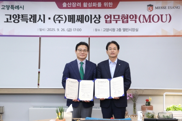 [금요저널] 고양특례시는 국내 대표 전시 주최사 ㈜메쎄이상이 지자체와는 최초로 출산 장려 활성화 및 건강한 양육 문화 조성을 위해 손을 잡았다고 밝혔다.