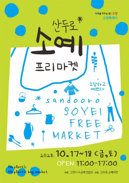 [금요저널] 오는 10월 17일~18일 양일간 오전 11시부터 오후 5시까지 일산동구 산두로 175번길 사재공원 앞 가로수길에서 ‘산두로 소예마켓’ 이 개최된다.