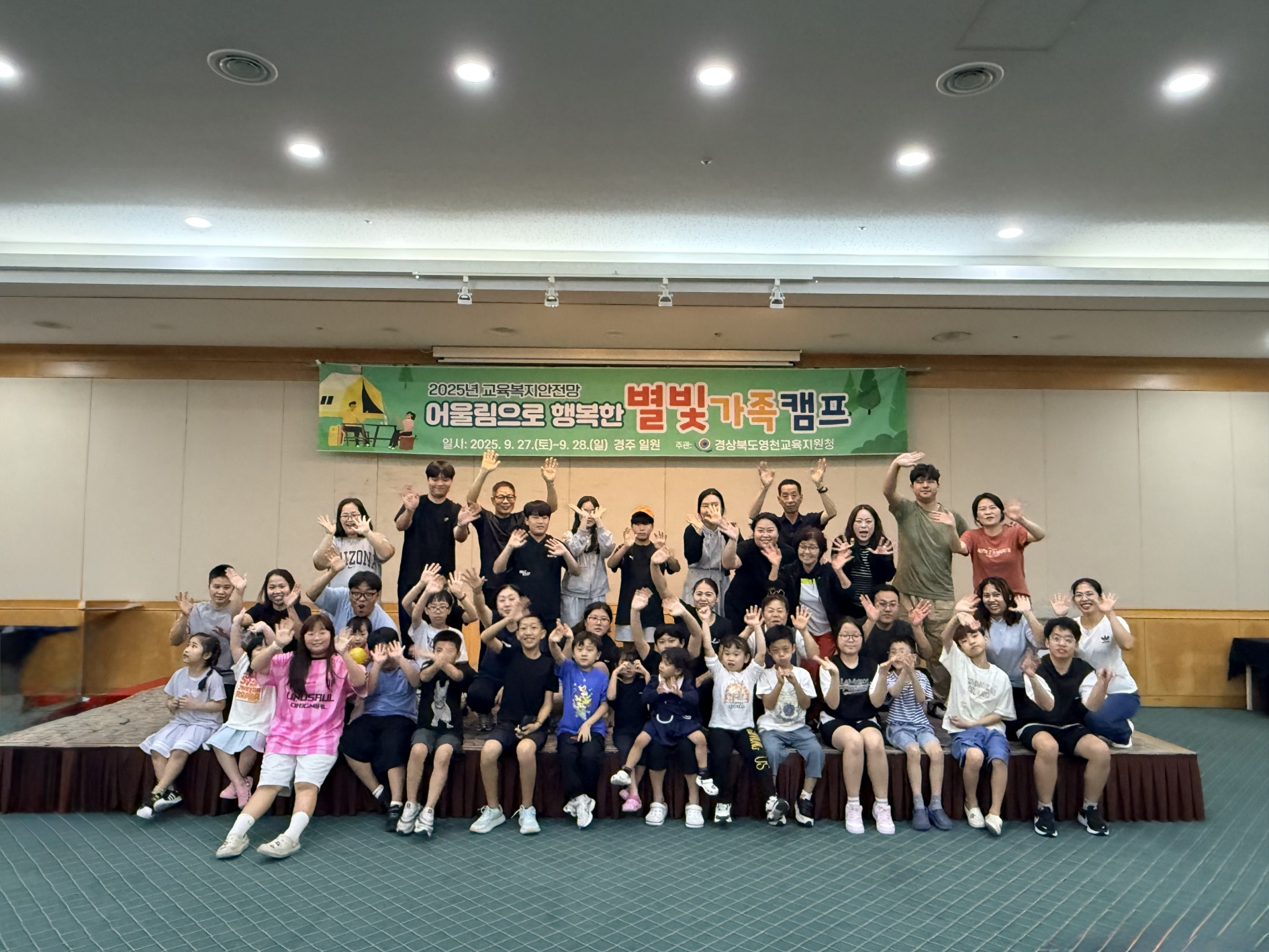 경상북도영천교육지원청(교육장 신봉자)은 2025년 9월 27부터 1박2일간 더케이호텔 경주에서 관내 초·중학생 자녀를 둔 11가정, 43명을 대상으로‘어울림으로 행복한 별빛 가족캠프’를 개최했다.