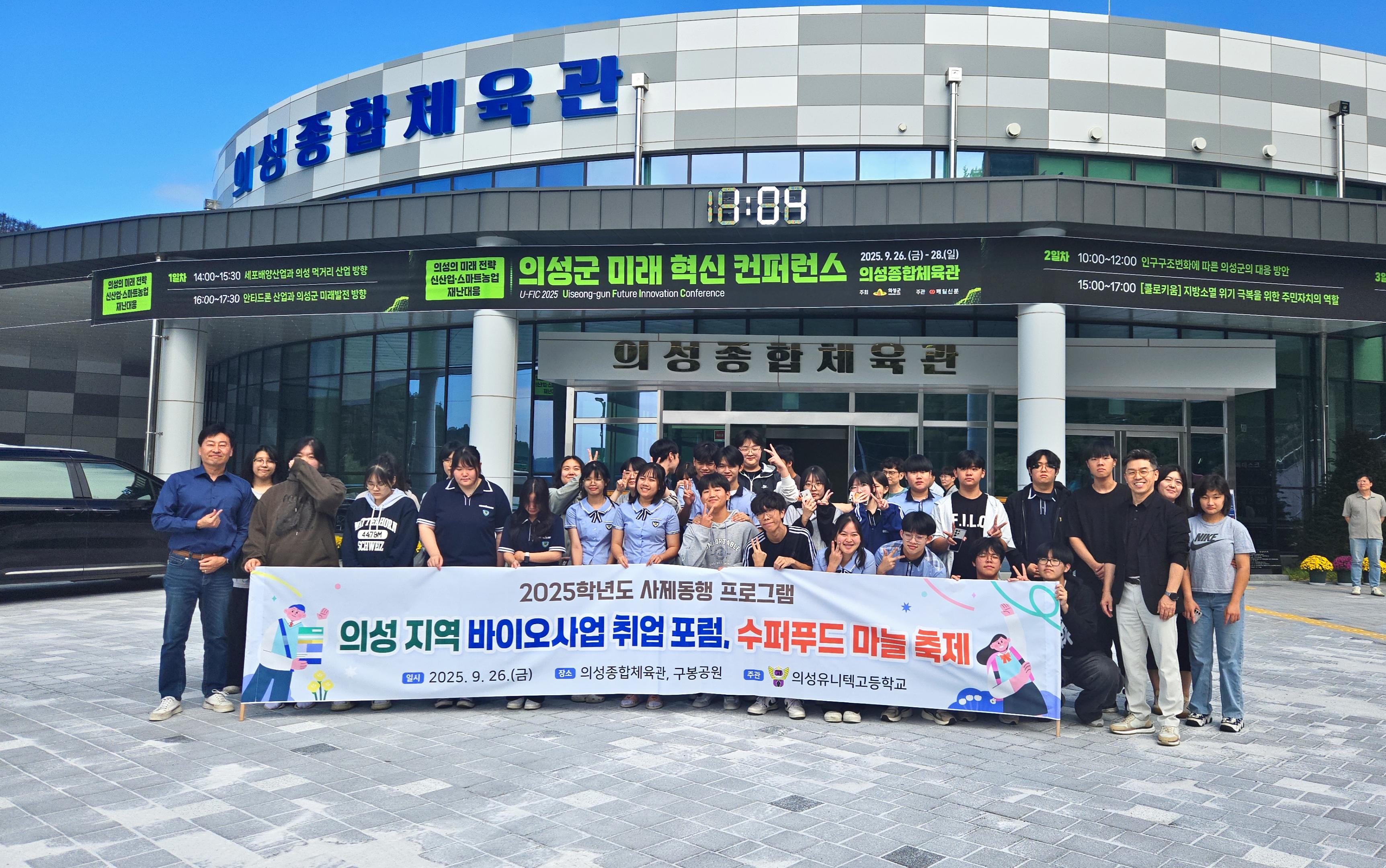 의성유니텍고등학교(교장 민재병)는 9월 26일 금요일, 2025년 사제동행 프로그램의 하나로 ‘의성 신 바이오산업 포럼’과 ‘수퍼푸드 마늘축제’에 참여하여 지역과 함께 성장하는 교육 활동을 펼쳤다. 이번 행사는 교사와 학생 간의 유대감을 강화하고, 학생들이 의성 지역에 대한 깊이 있는 이해를 바탕으로 지역 발전에 이바지하며 정주할 수 있는 인재로 성장하도록 지원하기 위해 마련되었다.