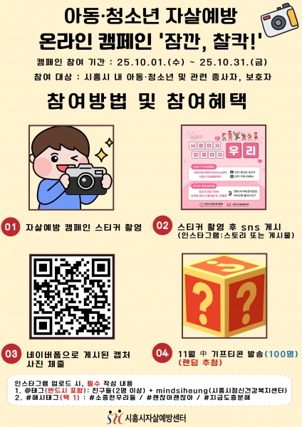 시흥시자살예방센터, ‘잠깐, 찰칵’ 아동·청소년 자살예방 캠페인 운영