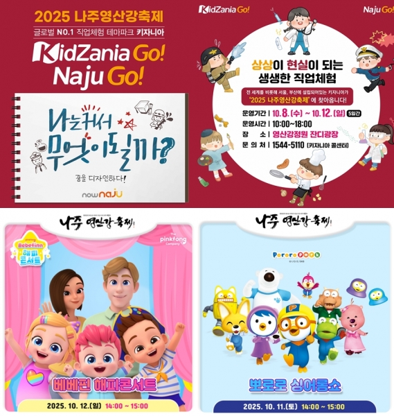 나주시는 글로벌 직업체험 테마파크 ‘키자니아’ 와 인기 캐릭터 뽀로로 베베핀의 싱어롱 공연으로 구성해 놀이와 학습, 공연을 한자리에서 즐길 수 있도록 기획했다고 30일 밝혔다.