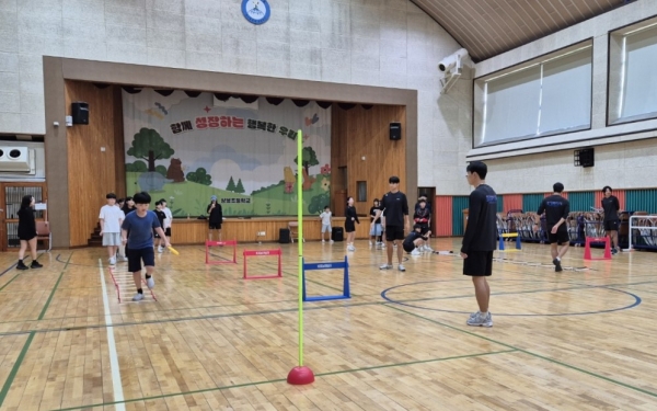 [금요저널] 화성특례시청 직장운동경기부 육상부가 지난 23일과 30일 봉담읍 소재 상봉초등학교 학생들을 대상으로 진행한 재능기부 특강이 학생들의 호응 속에 마무리됐다.