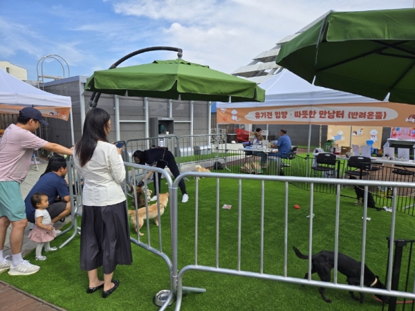 ‘반려온뜰’은 이날 행사에서는 입양 홍보부스를 통해 반려온뜰에서 보호 중인 유기견 6마리와 함께 방문객들과 교감하는 ‘작은 만남터’를 운영해 현장을 방문한 입양희망자들을 대상으로 개별 맞춤 상담을 진행하고 신중한 입양을 독려했다.