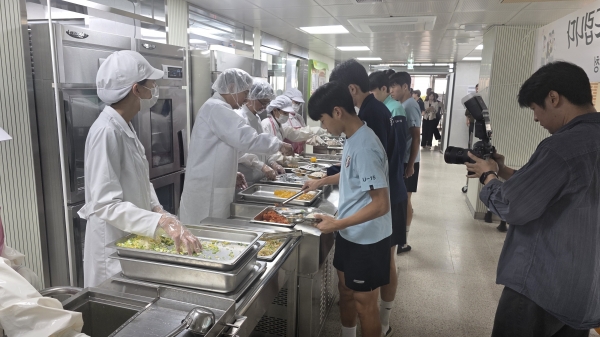 참관 행사에서 방문단은 직접 시식하고 학생들의 배식에 참여하며 운영 현황을 확인했다.
