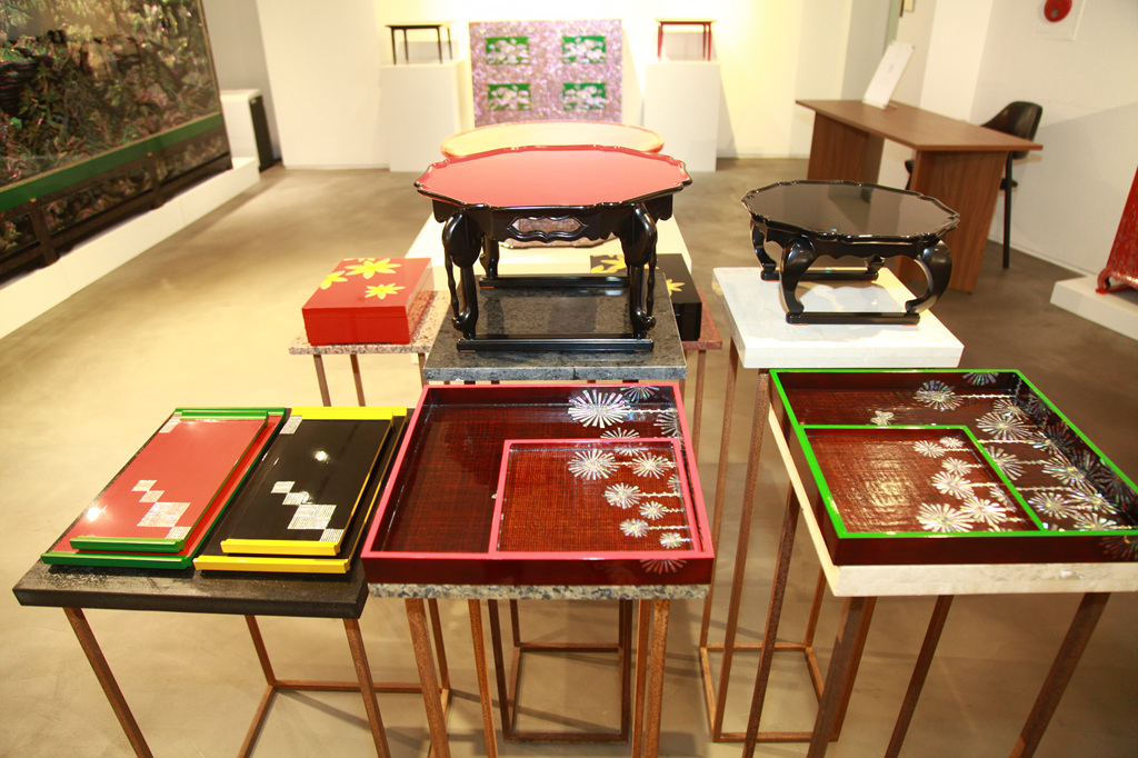 나전칠기는 전복, 진주조개, 소라 등의 껍질을 얇게 잘라서 나무나 옻칠한 바탕위에 붙이고 그 위에 다시 옻칠을 입혀 표면을 매끄럽게 만든 후 갈아내는 방식으로 작품이 완성되는데 총 165과정을 거쳐야 비로소 완성되는 귀한 공예품이다. 이번 전시의 대표 작품은 아름다운 산수가 천연의 빛으로 발산되는 화려한 자개농과 일월오봉도로 나전칠기의 진수를 만나볼 수 있는 기회를 제공하고 있다.
