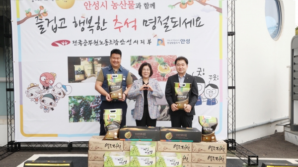 안성시지부는 매년 명절마다 지역 농산물 소비 확대를 위해 노력해 왔으며 올해는 안성 배를 비롯해 지역 농가가 정성껏 재배한 과일을 중심으로 마련했다.