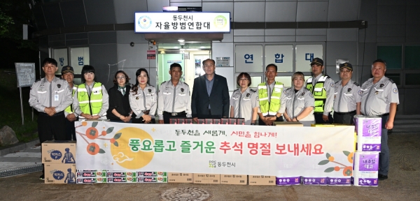 [금요저널] 박형덕 동두천시장은 9월 29일 추석 명절을 앞두고 동두천시 자율방범대를 방문해 위문품을 전달하고 지역 치안과 범죄 예방을 위해 헌신하는 대원들을 격려했다.